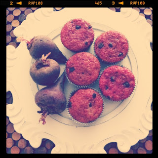 We came home with a lot of beets from this weeks trip to the farmers market. We've already had them as a side dish this week, so I wanted to use the remainder in an different fashion. Since beets are naturally sweet, it only makes sense to incorporate them in baked goods. After all, we use carrots, zucchini and bananas...so why exclude this root-vegetable from the group.